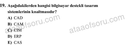 Erzurum Atatürk Üniversitesi Açık ve Uzaktan Eğitim Fakültesi Ata Aöf Bilgisayar Destekli Kalıp Hazırlama 1 Çıkmış Sorular Vize Sınavı Test 1. Bilgisayar Destekli Kalıp Hazırlama 1 dersine ait çalışma soruları, ünite testleri ve çıkmış sorular. Aşağıdaki Teste Başla butonuna tıklayarak testi başlatabilirsiniz..