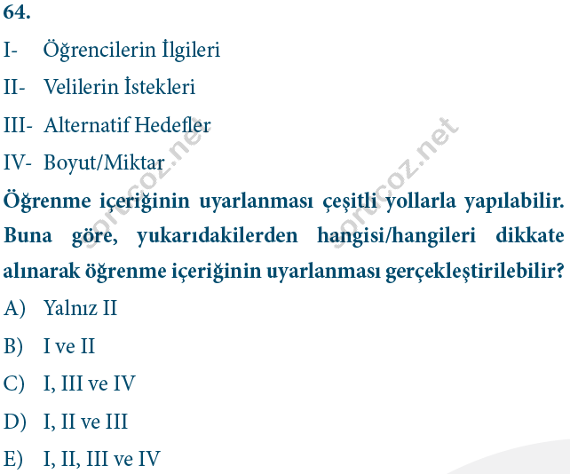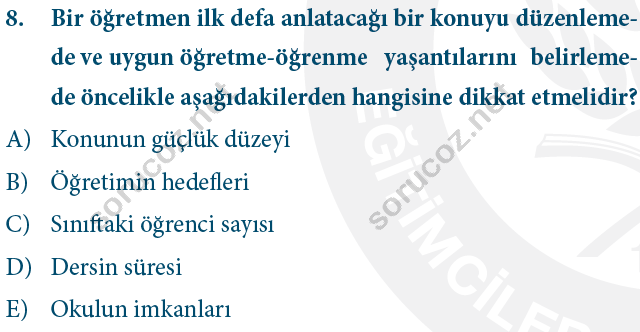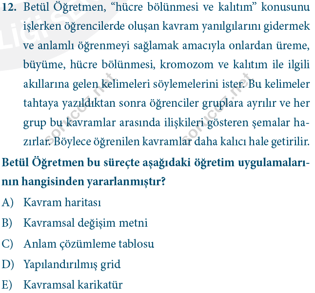 Eğitim Bir Sen tarafından yayınlanan Konu Kavrama Testleri örnek soruları online çözmek için tıklayın.